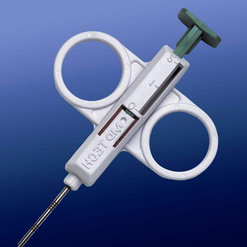 特點(diǎn):輕巧、緊湊,自撐力強(qiáng),可單手操作,快速準(zhǔn)確;鋒利的外管邊沿有助于保障組織的完好無損;針尖在超聲圖像下可視性強(qiáng);切割組織時(shí),管芯針不移動;針尖斜面鋒利,扎入時(shí)快速簡便,對器官及周圍組織損傷??;彈槍式機(jī)械系統(tǒng)快速準(zhǔn)確。