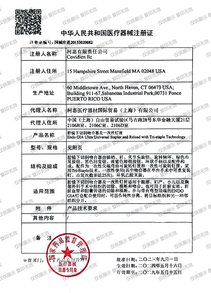 1.Covidien柯惠腔鏡下切割吻合器及一次性釘匣可能含有禁忌內(nèi)容或者注意事項(xiàng),具體詳見(jiàn)說(shuō)明書(shū)。