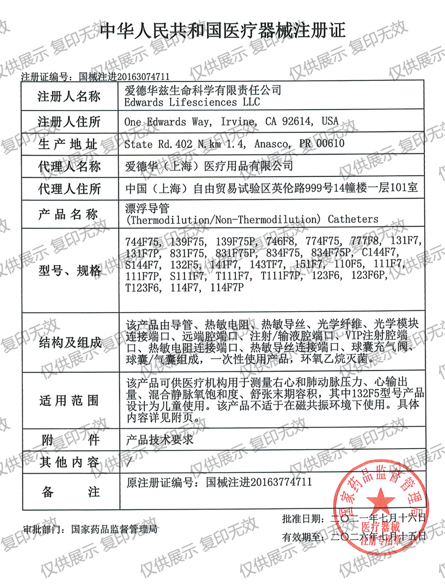 產(chǎn)品名稱:漂浮導(dǎo)管(Thermodilution/Non-Thermodilution) Catheters